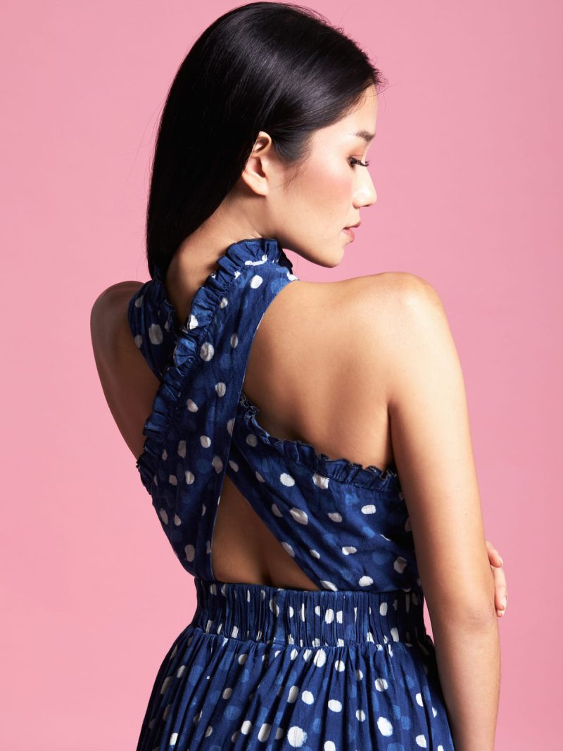 Blue and white, hand block printed polka pattern