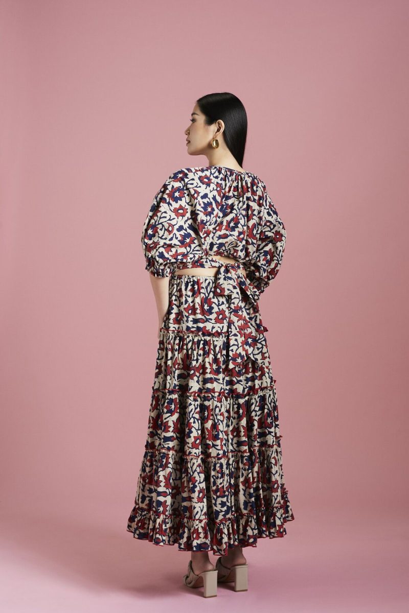 Sky blue accented with bloom print