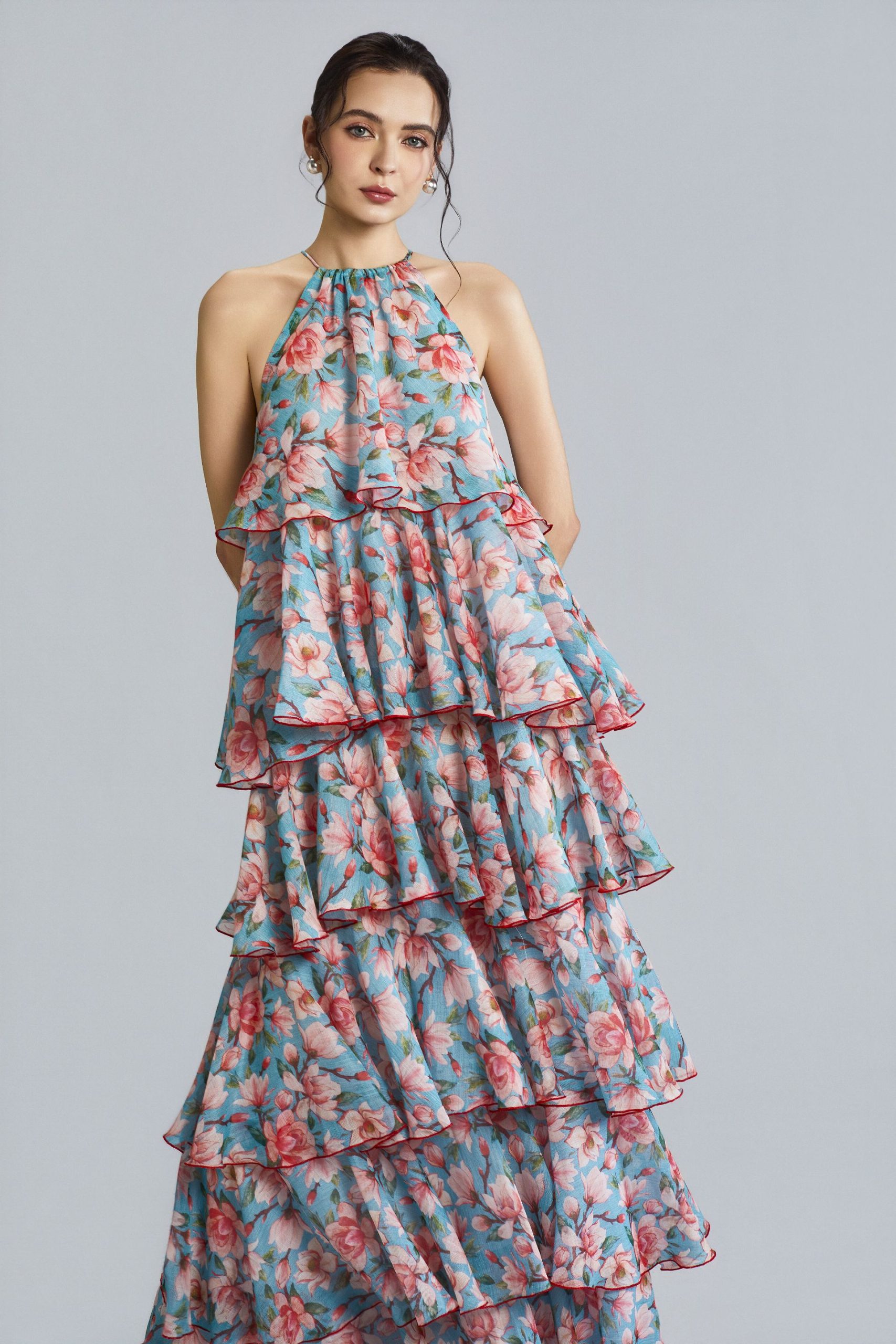 The Bloom dress, crafted in the softest silk linen fabric with beautiful floral accents. Demure cascading layers sway with every step, while a refined high neckline beautifully highlights the collarbone. Wear it with summer sandals for daytime charm or elevate the look with strappy heels for evening events. Presenting your favourite summer dress!